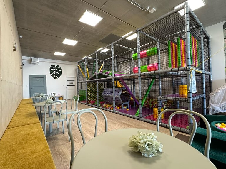 Kawiarnia, sala zabaw, zajęcia zorganizowane dla dzieci i dorosłych.